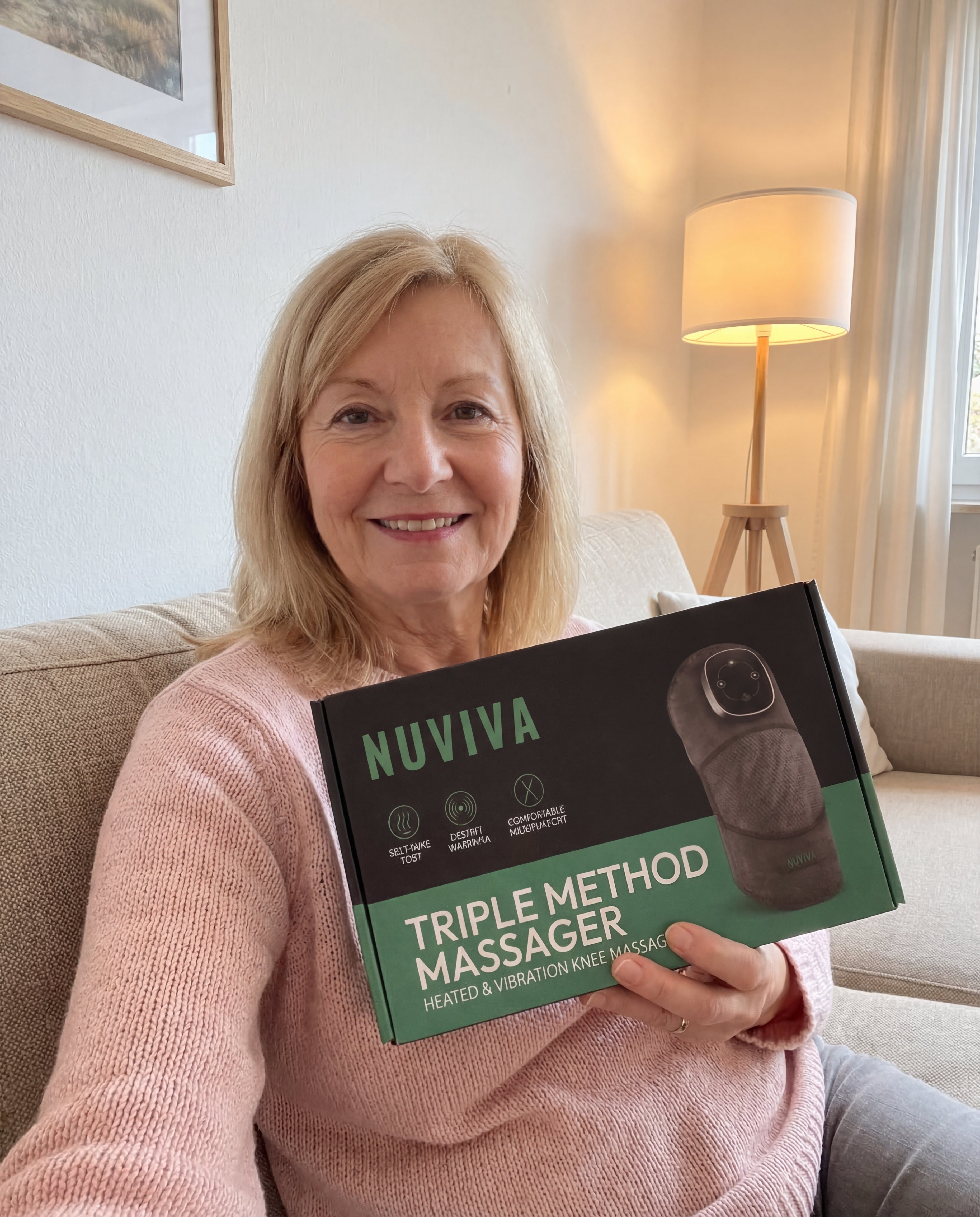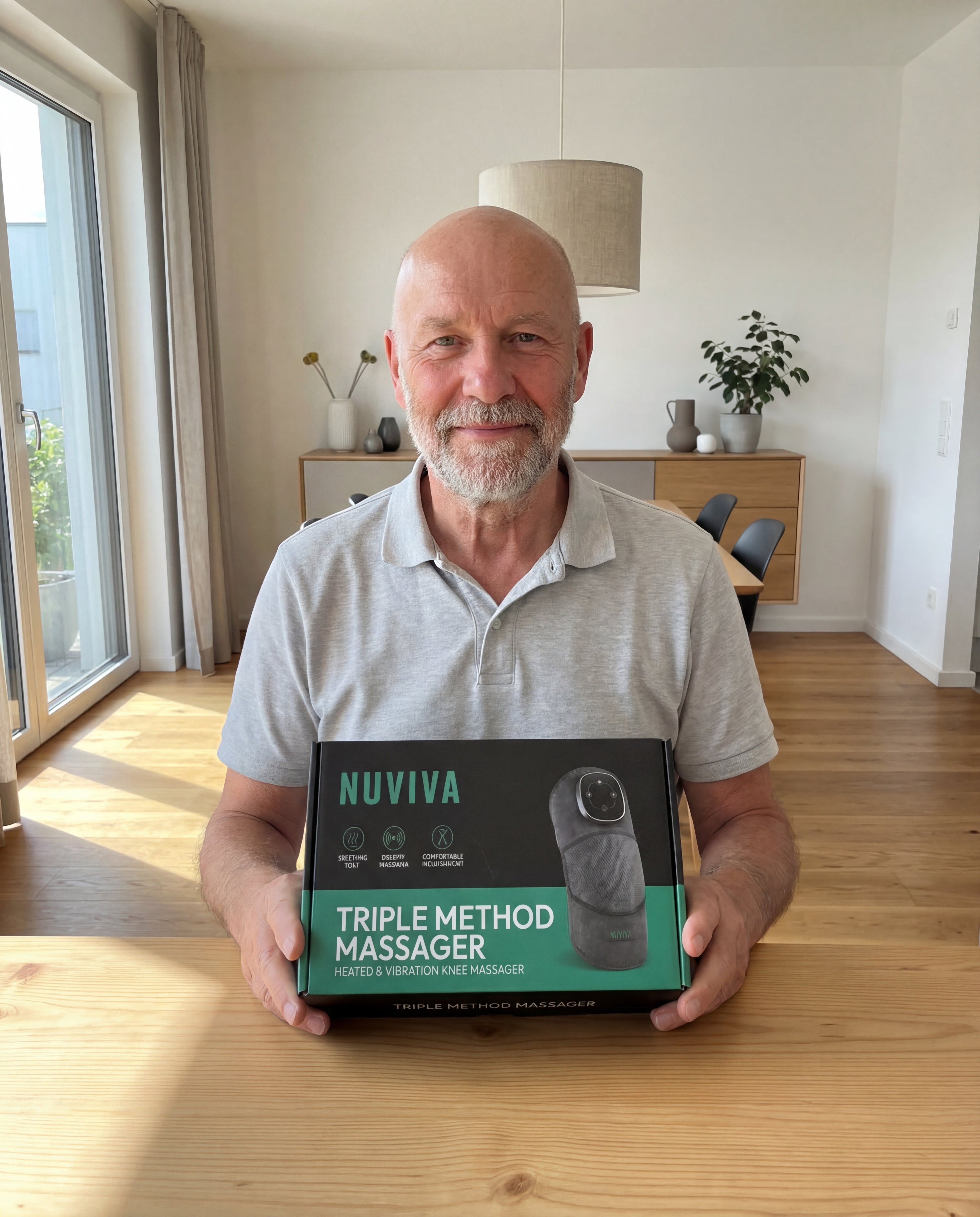 „Seit meiner Arthrose-Diagnose vor drei Jahren habe ich ein Vermögen für Salben, Tabletten und Therapien ausgegeben – nichts hat dauerhaft geholfen. Der Nuviva war meine letzte Hoffnung, bevor ich mich mit der OP auseinandersetzen wollte. Schon nach der ersten Anwendung hat sich mein Knie warm und entspannt angefühlt. Jetzt nutze ich ihn jeden Abend vor dem Fernseher und kann wieder schmerzfrei in meinem Garten arbeiten. Das hätte ich nie für möglich gehalten."